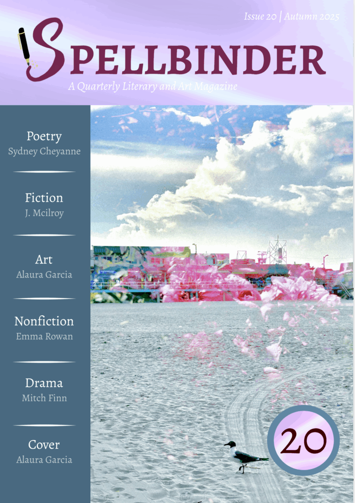 What stays with me about Spellbinder is its quiet belief in writers. There’s no rush to explain, no pressure to impress, just a space where language is allowed to mean something. The publication holds room for uncertainty, for work that resists polish in favour of truth. Being part of the team has reminded me that writing is not about arrival, but about reaching towards clarity and connection. Spellbinder gives that reaching a place to land, without demanding it be complete. That feels rare, and necessary. A massive thank you to Amber and the team for allowing me to be part of this.