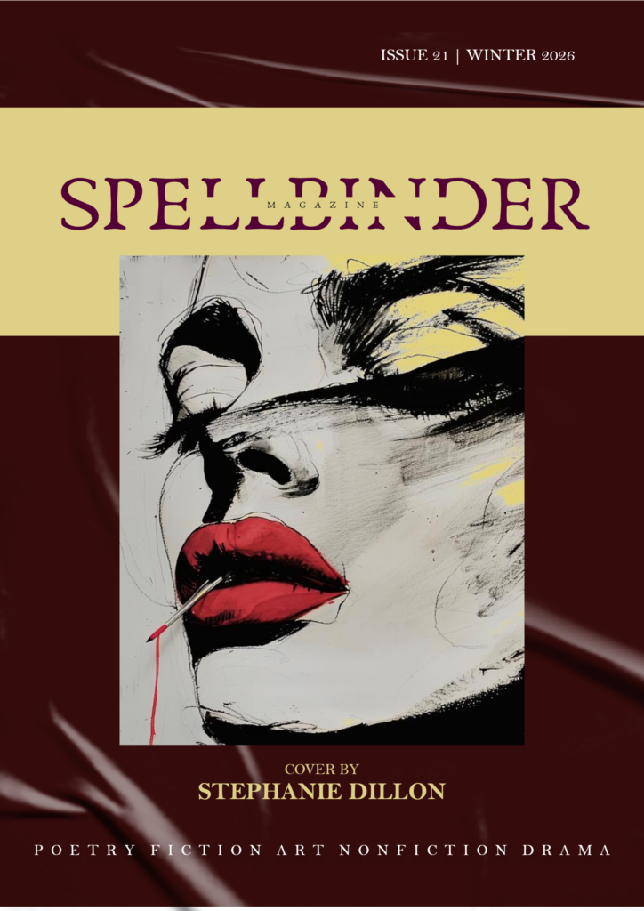 Spellbinder remains a platform for brave and uncompromising art. Central to our publication is honesty: in the voices we publish, the conversations we encourage, and the way work is presented. Our aim is simple and deliberate, to honour creative voices and share their work with integrity and intention.